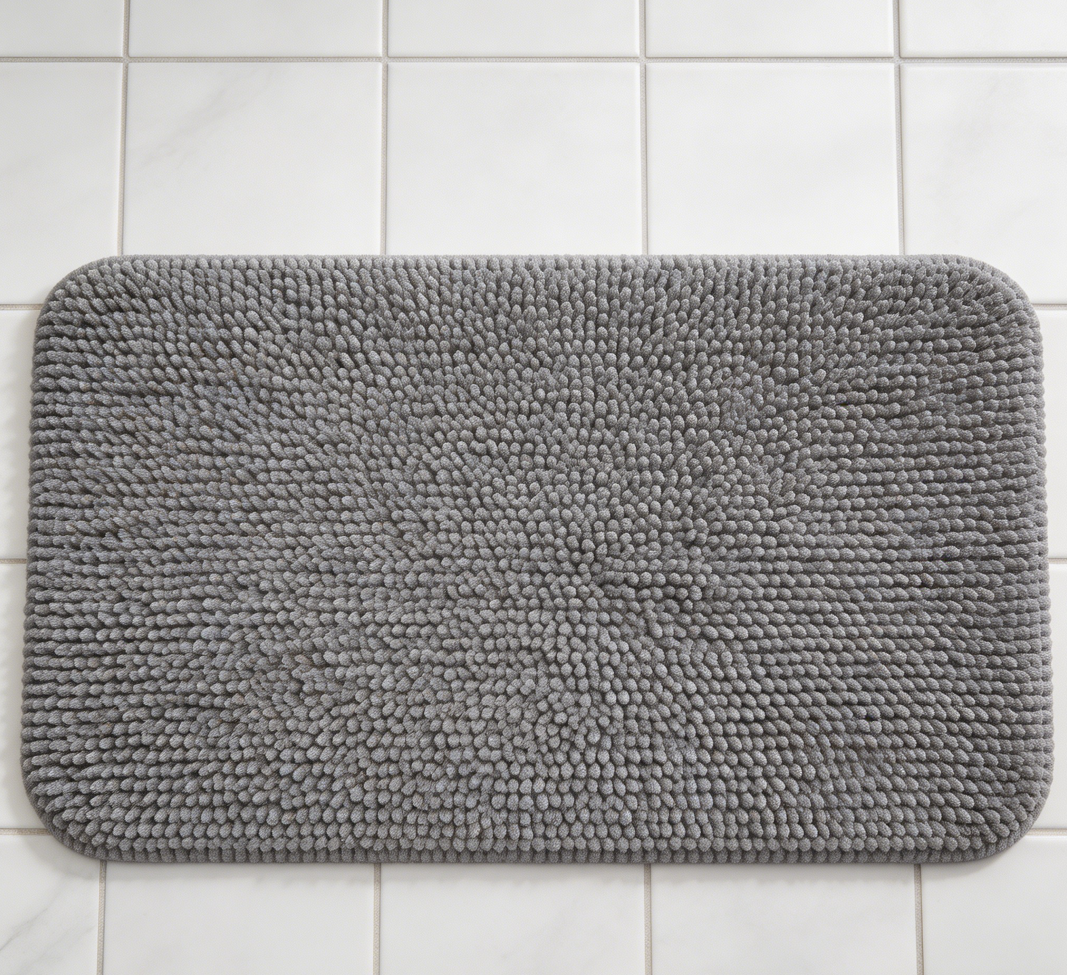 Extra Soft Chenille Bath Mat, Highly Absorbent, Rubber Backing, Quick‑Dry, Machine Washable, Grey