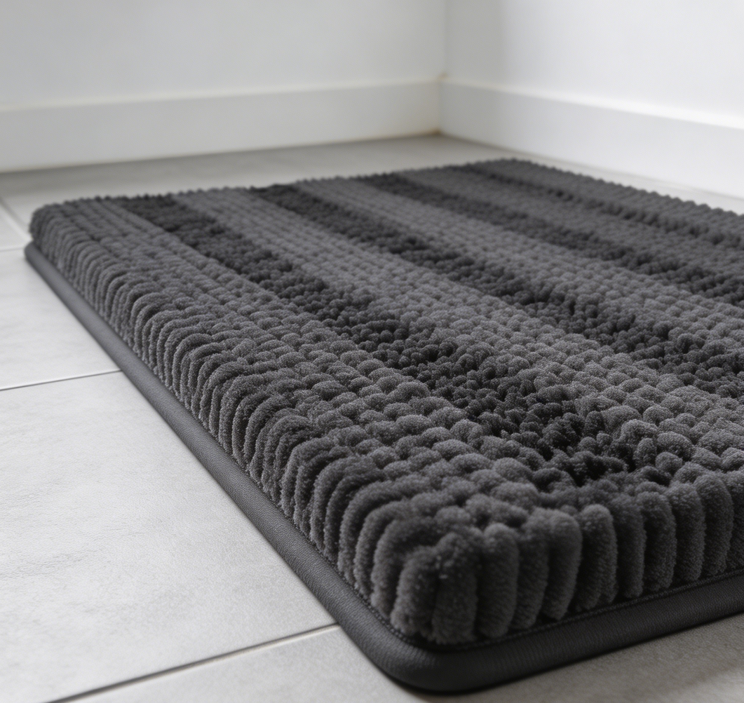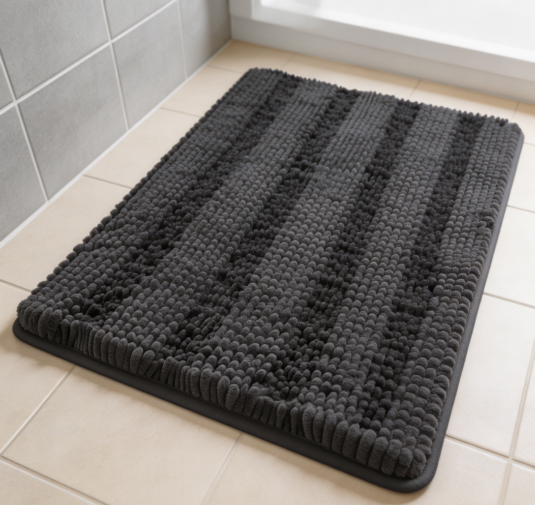 The chenille pile is not only soft but also highly absorbent. It captures moisture efficiently, drawing water away from the skin and into the fibres, where it can gradually evaporate. This helps keep the surrounding floor area free of drips and splashes. The dense shaggy texture also provides a certain amount of insulation from cold tiles, which can be particularly welcome during the colder months. The non‑slip backing keeps the mat securely in position on dry, smooth floors, minimising movement when stepped upon.