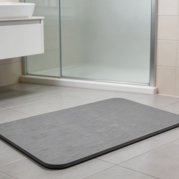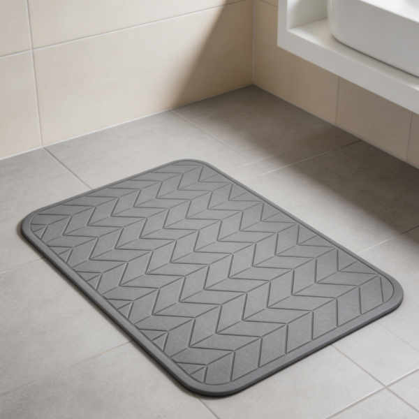 • Quick‑dry and fresh: Once moisture is absorbed, the mat releases it back into the air through natural evaporation. No heating, hanging, or special ventilation is required — a normal bathroom environment is sufficient. The mat is usually dry to the touch within a matter of minutes, which means it is ready for the next person without the mustiness that can develop with slower‑drying fabric mats.