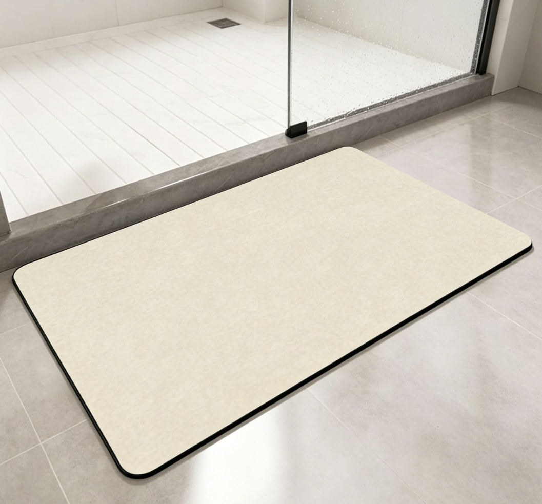 Thin Diatomaceous Earth Bath Mat – Beige, Super Absorbent, Quick‑Dry, Non‑Slip, Fits Under the Door